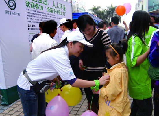 在湖北,举办了“绿色行动•袋袋相传”大型公益活动,免费向市民发放环保布袋,同时向社会发出了《环保袋袋传•从我家做起》倡议书。此外,还联合湖北省环护局开展了节能减排短信宣传活动,发送节能减排宣传短信180万条。