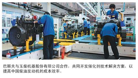 减少尾气排放的催化剂 中国的汽车数量正在迅速增长,由此导致了更为严重的污染。因此,很多大城市开始关注城市公共交通运输系统以及降低尾气排放的相关技术。巴斯夫与中国最大的发动机制造商玉柴机器股份有限公司展开合作,运用巴斯夫研制的选择性催化还原(SCR)技术开发出满足欧IV排放标准的柴油发动机,装配该柴油发动机的1000辆公交车已经在首都北京成功运行。另外,更多配备这种新型发动机的公交车也正在杭州街头运行。同时,包括广州、上海与深圳在内的国内其他城市,也正着手开展使公交车满足欧IV排放标准的项目,且正在对使用巴斯夫催化剂技术的玉柴发动机进行评估。SCR技术可将有害的氮氧化物(NOx)的排放量降低60%以上。SCR催化剂包含催化活性成分,并涂于蜂窝陶瓷载体上。在加入还原剂(如巴斯夫AdBlue®尿素)后,催化剂将促使其发生化学反应,从而将氮氧化物转化为水和氮气。为表彰双方的成功合作,玉柴机器股份有限公司向巴斯夫授予最佳供应商大奖。