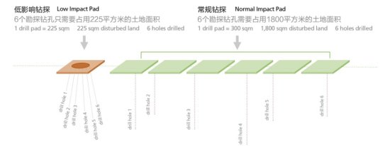 低影响钻探是目前世界上比较先进的钻探方法,通过该方法可以减少井架占地面积,缩短进入钻探点的道路距离,提高复垦效率,保留重要自然植被,钻机上配备的除尘器可减少粉尘对大气的污染。