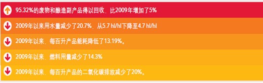 ▶ 51,000吨废麦糟和60,000吨废酵母已用作动物饲料利用; ▶ 7,000吨玻璃和6,000吨纸板被回用,而不用填埋处理;