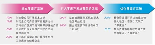 在业务全球化的同时,公司于2004年12月和2008年1月分别在亚太地区(泰国)和中国苏州设立了循环再利用工厂。至此,富士施乐在其全部业务领域内构筑了与日本相同的“整合资源循环系统”。