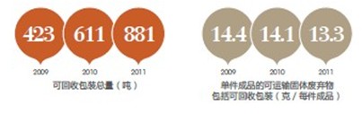 在过去的两年中,依据在包装方面可持续的“3R”原则,即尊重消费者与自然,减少包装对原材料的耗用,以及可再生材料的使用,我们采用多项举措推进可持续包装工作。针对过度包装问题,欧莱雅启动更为严格的包装材料用量评估流程,要求每一个新包装设计必须不能超过欧莱雅包装用量的使用上限才能进入到开发阶段。通过这一工具,我们对卡尼尔50毫升膏霜产品瓶盖成功进行改良,把瓶盖结构从两件套减化为一件套,从而成功地将单个产品瓶盖重量降低8克。因此,2010年和2011年我们分别节省了62.4吨和52.24吨聚丙烯(PP)材料。同时,为更好地对包装设计的环境影响进行评估,欧莱雅使用了“包装影响快速评估工具”(Packing Impact Quick Evaluation Tool)。2011年,我们在中国市场86%的纸质包装获得森林管理委员会(FSC)认证。植村秀等个别品牌使用了100%FSC认证的纸张,成为市场公认的绿色品牌。此外,从2011年开始,亚太区营运部开发的包装产品已经100%消除了聚氯乙烯(PVC)材料的使用。