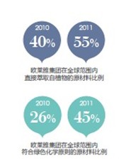 在过去几年中,欧莱雅大幅提升人工种植原材料的使用比例。同时,大批植物原生性化学材料,如多糖、低聚糖、类脂、多元醇和氨基酸在欧莱雅产品中得到大范围使用。另一方面,保护自然资源以及生物多样性是欧莱雅可持续发展承诺的另一组成部分。自2005 年研发中心成立以来,为让中国消费者更好地受益于中草药美容产品,欧莱雅研发与创新中心通过与本土供应商及科研机构合作开发新的源于中草药的植物原生性成份。2010 年成功上市的羽西灵芝孢子多糖系列产品就是其成果之一。
