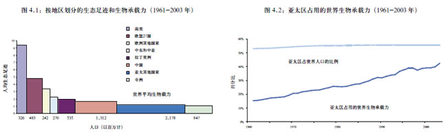 将扮演日益重要的角色。亚太区拥有超过50% 的世界人口,需要接近40% 的全球生物承载力,这一地区的决定将会影响到世界。亚太区能否避免局部的和大规模的崩溃,而不受其他地区崩溃的波及?亚太区能否推动全球的可持续发展,成为其他国家学习的典范?