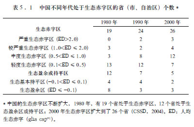 · 尽管人均消费较低,然而,中国从20 世纪70 年代中期就出现生态赤字,每年需要的生物承载力大于其自身生态系统的供给能力。2003 年,中国需要两个中国大小才能供应其消费和吸纳其制造的废物。大部分生态赤字主要来源于CO2 的排放。CO2 排放是由于化石燃料的燃烧而没有固定。