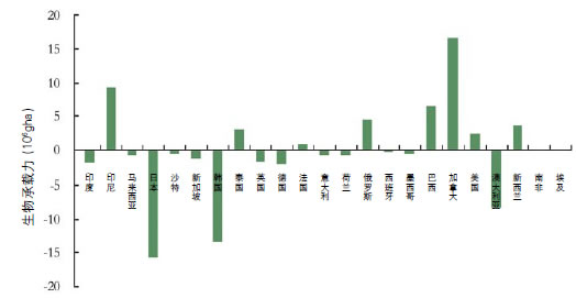图7.2: 中国与主要贸易伙伴间大宗货物贸易携带流转的生物承载力(按国家)