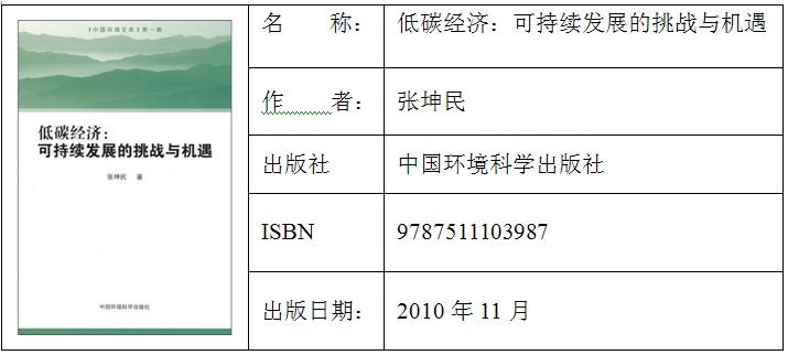 2010年,张教授推出低碳系列的第三本书《低碳经济:可持续发展的挑战与机遇》。与前两本书不同,这本书收录的都是张教授个人或合著的文章和讲话,时间跨度从1989年到2010年。这一时期,正是中国环境保护飞速发展的时期,也是环境问题密集出现的时期。